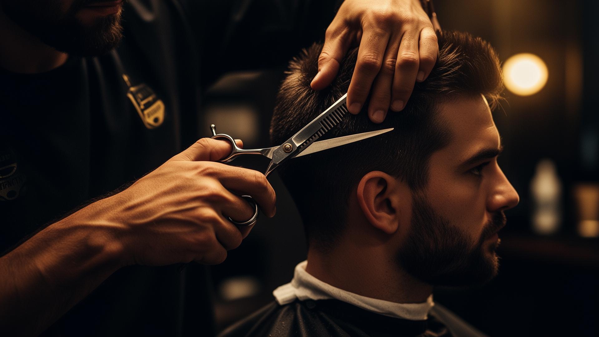 La tondeuse trace. Les ciseaux affinent. Chaque mouvement est calibré. Le geste est précis, jamais pressé.